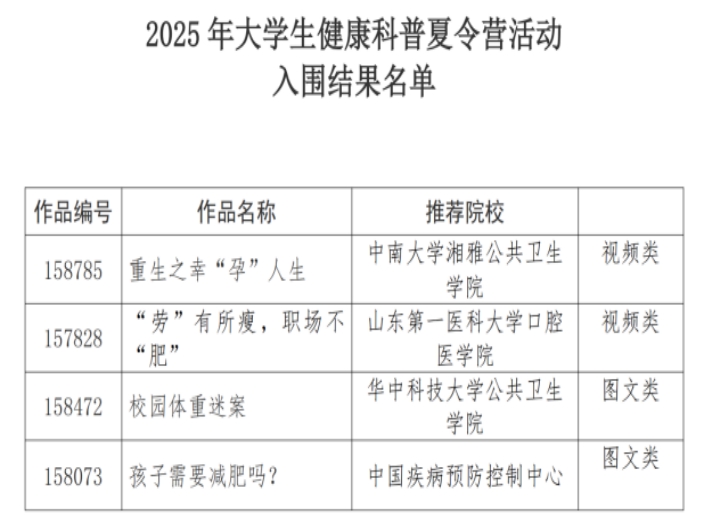 为激励在校大学生健康科普作品创作热情,促进健康科学知识的传播和普及,中华预防医学...