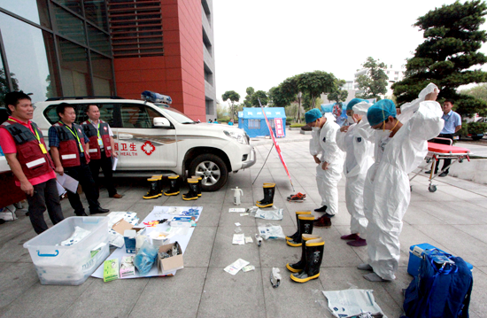 6 月6日 ,任国峰副院长和预防医学实验中心丁萍副主任前往广东省CDC观摩了第二届广东省大中专学生预防医学技能竞赛。该赛事为第九届广东大中专学生科技学术节的组成部分,由共青团广东省委员会、广东省教育厅、广东省科学技术厅、广东省科学技术协会和广东省学生联合会主办,南方医科大学、广东省CDC、广东省公共卫生与预防医学专业教学指导委员会承办,来自广东省11所高校的43支队伍在此进行了激烈的角逐。该大赛分为卫生实践技能竞赛和创新实验竞赛两大环节。在卫生实践技能竞赛中,预防专业组依次进行公共卫生案例分析和公共卫生基本操作技能两部分内容的竞赛,各参赛队随机抽取1个公共卫生案例,口试回答问题;然后依次完成个人防护、样品采集、现场检测和卫生处理等四项公共卫生基本操作。其他专业组完成突发公共卫生事件中个人防护、急救(心肺复苏)和卫生处理3项应急处理操作。通过观摩此次比赛发现,该赛事不仅对加强预防医学生人文关怀精神和基础理论、基本知识、基本技能的培养具有重要意义,而且在提升预防医学生创新能力、实践能力和团队合作意识,全面提高预防医学生综合素质和人才培养质量方面意义深远。