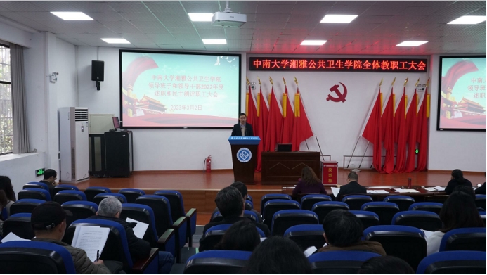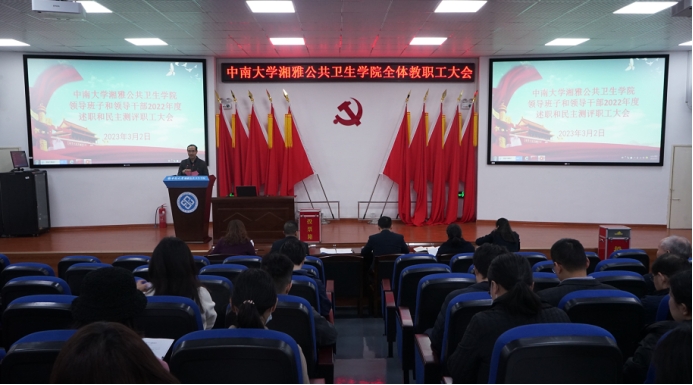 领导班子和领导干部2022年度述职和民主测评大会于2023年3月2日上午在学院学术报告厅顺利举行,学院党政领导班子成员及全院教职工参加,会议由学院党委副书记、院长胡国清教授主持。