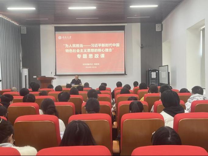 师生代表讲授专题思政课,主题为“为人民担当——习近平新时代中国特色社会主义思想的核心理念”,韩漫