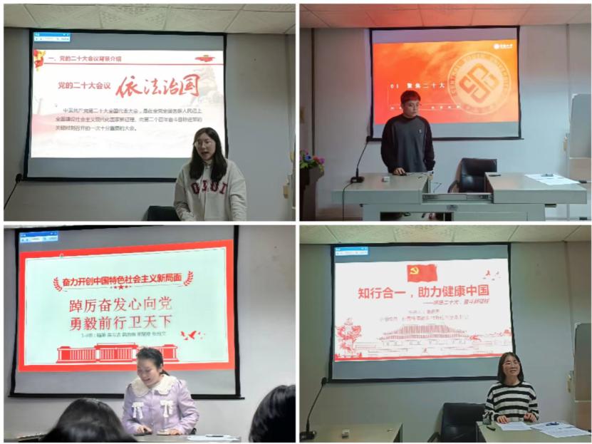 本次党日中,通过微党课分享学习二十大精神心得体会的5个小组,分别从“感悟二十大 民主新路标”、“全面推进依法治国”、“踔厉奋发心向党 勇毅前行卫天下”、“回顾医疗事业百年历程”、“知行合一 助力健康中国”等不同角度,对标党的二十大报告,谈成就、谈体会、谈使命、谈行动。小组成员通过提前收看现场学、梳理要点归纳学、小组成员研讨学等多种渠道和方式精学二十大报告全文、深悟二十大精神内涵、把握二十大核心要义。
