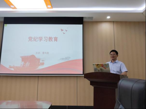 党委书记雷先阳在院会议室B203为研究生第一党支部师生讲授党纪学习教育专题党课,党课由研究生第一党支部书记陈梦施主持。