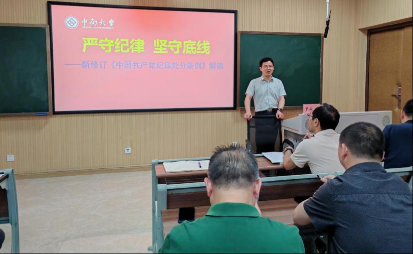 ,为学院全体教职工和党支部正副书记带来了一场主题为“严守纪律,坚守底线”的廉洁教育与党纪学习教育专题宣讲。宣讲由学院党委书记雷先阳主持。