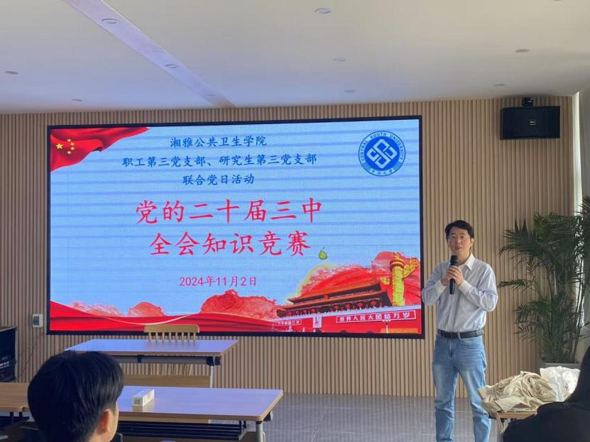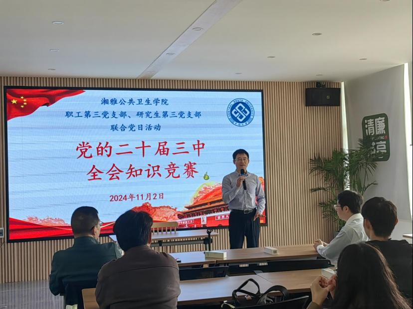 下午,全体党员在泉丰村村部会议室举行了一场党的二十届三中全会知识竞赛。答题竞赛围绕学习贯彻党的二十届三中全会精神、加强党性修养、推动工作落实等方面进行了深入交流和探讨。会上,职工第三党支部书记陈继华和学院党委书记雷先阳先后讲话。陈继华表示,这次党日活动是一次深刻的思想洗礼和精神锤炼,支部全体党员要以此为契机,进一步加强学习、锤炼党性、改进作风、推动工作,为实现学院各项事业发展目标而努力奋斗。雷先阳强调,进一步全面深化改革、推进中国式现代化是二十届三中全会的“根”和“魂”,要通过这次党日活动,进一步坚定理想信念,增强党性,提高政治素质和工作能力,为推动学院各项工作进一步发展做出新的更大贡献。