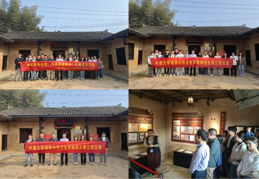 职工第三党支部联合研究生第三党支部,一同前往中共湖南省委旧址开展“缅怀革命先烈,传承英雄精神”主题党日活动。职工第三党支部、研究生第三党支部全体党员参加,学院党委书记雷先阳受邀参加。