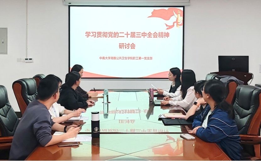 师生党员基本培训第三课的基础上开展,以深入学习贯彻党的二十届三中全会精神,推动公共卫生教育与科研工作的发展。本次会议由职工第一党支部副书记宁佩珊主持。
