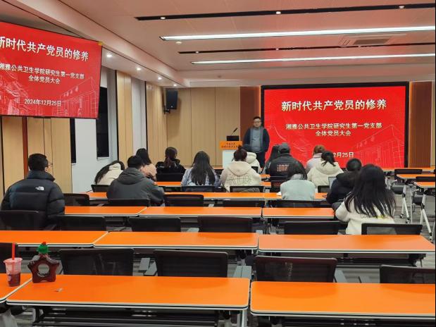 研究生第一党支部于学院六楼学术报告厅召开了党员大会暨党员基本培训第四课交流研讨会。会议由支部书记陈梦施主持,全体党员参加会议。