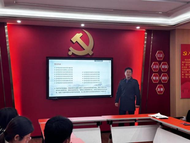 学院党委书记雷先阳为全体党员讲授专题党课。雷书记以“以中国式现代化全面推进中华民族伟大复兴”为主题,从中国式现代化的历史逻辑、理论内涵、实践路径等方面进行了深入浅出的讲解。雷书记强调,中国式现代化是中国共产党领导的社会主义现代化,是实现中华民族伟大复兴的必由之路。全体党员要认真学习领会党的二十大精神,深刻理解中国式现代化的科学内涵和重大意义,坚定理想信念,牢记初心使命,为实现中华民族伟大复兴的中国梦贡献自己的力量。