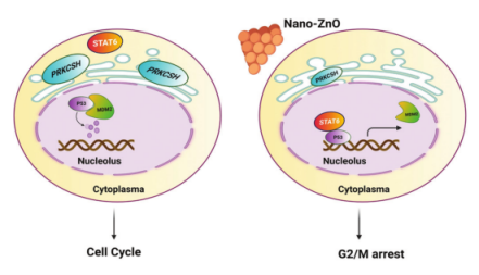 该研究通过分析来自癌症数据库的生物信息学数据以及PRKCSH和STAT6之间的表达关系,生成了PRKCSH在癌症中表达变化的生物学图谱。此外,该研究还证实了PRKCSH缺乏可能诱导STAT6移位到细胞核,从而激活p53的表达,导致纳米ZnO诱导的肺癌细胞G2/M期阻滞。G2/M期细胞周期检查点对肺癌的预后至关重要,靶向PRKCSH表达抑制STAT6/p53通路的激活是治疗肺癌的一种有前途的治疗策略。有助于为肺癌患者提供更准确的治疗和更好的预后。