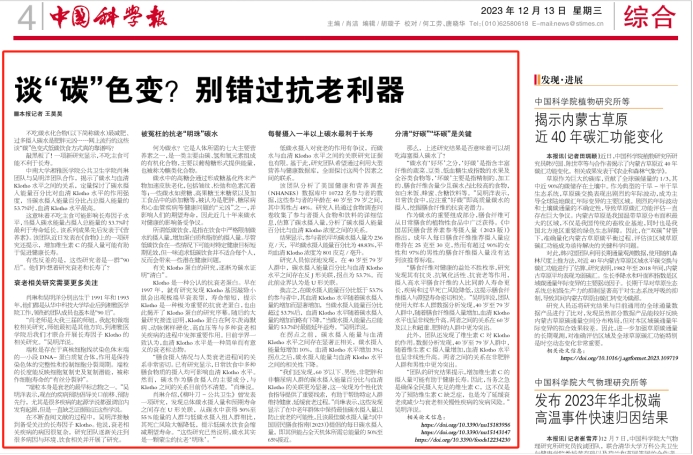 12月13日出版的《中国科学报》,在第四版头条的位置,刊发题为《谈“碳”色变?别错过抗老利器》的新闻。文中,对韩漫