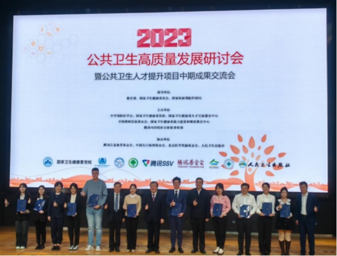 2023年11月24日,2023公共卫生高质量发展研讨会暨公共卫生人才提升项目中期成果交流会在北京成功举办。会议由国家教育部、国家卫生健康委员会、国家疾病预防控制局指导,中华预防医学会、国家卫生健康委党校、国家卫生健康委人才交流服务中心、中国教师发展基金会、国家卫生健康委能力建设和继续教育中心、腾讯可持续社会价值事业部主办,腾讯公益慈善基金会、中国人口福利基金会、北京医学奖励基金会、人民卫生出版社协办。中国红十字会会长、中国科学院院士陈竺,国家卫生健康委员会副主任、中华预防医学会会长李斌,国家疾病预防控制局副局长、中国疾病预防控制中心主任、中国工程院院士沈洪兵等领导和嘉宾受邀出席,来自北京大学、韩漫