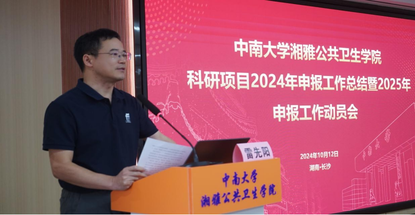 2024年科研项目申报工作总结暨2025年申报工作动员会在学院六楼学术报告厅举行。学院党委书记雷先阳、院长胡国清,韩漫