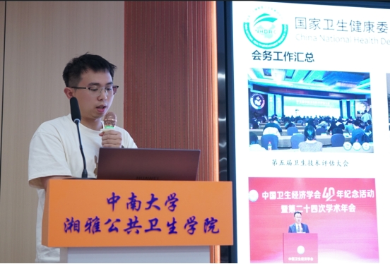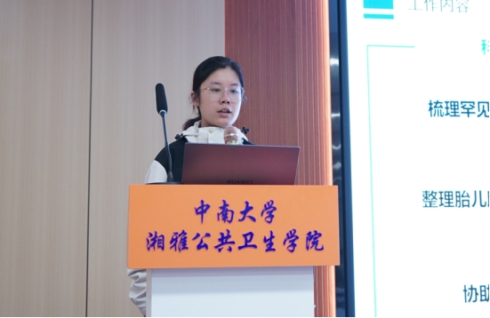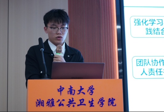 在汇报分享环节,2022级公共卫生硕士专业学位研究生依次汇报,介绍了自己过去一年在实习单位的主要工作,分享了自己的心得体会以及对学院未来进行的专业实践提出了宝贵的建议或意见。余意同学在湖南省妇幼保健院医学遗传科进行专业实践时,学习到了有关胎儿常见出生缺陷疾病、产前筛查与产前诊断技术的相关医学知识,自主协助导师和校外导师的多个国家级、省级科研项目的申报,提升了专业能力,推进了课题研究进展,收获颇多。张杨同学前往韩漫