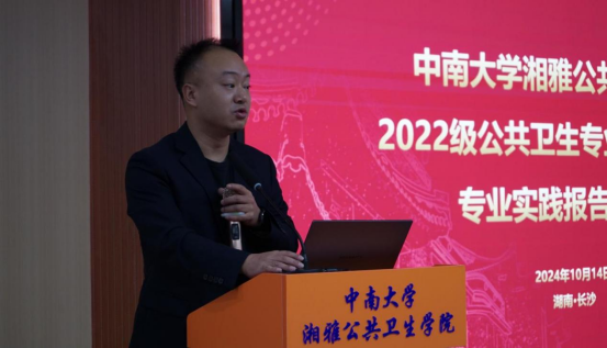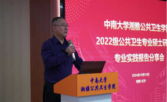 秦家碧副院长在会上强调了公共卫生硕士专业学位研究生专业实践的重要性。他指出,国家战略层面上需要培养高层次应用型高水平公共卫生人才,以应对突发公共卫生实际问题,新冠疫情的暴发更加凸显了公共卫生医师的重要性。目前学院正在探索与湖南省疾病预防控制中心开展公共卫生医师规范化培训项目,根据公共卫生硕士培养目标,科学地融入专业实践内容,系统性地重点培养理论与实践相结合的复合型公共卫生人才。他鼓励同学们深入实践,不断探索,充分掌握公共卫生领域的核心技能,形成自己在该领域的独有的优势特色,为未来的职业生涯做好铺垫。