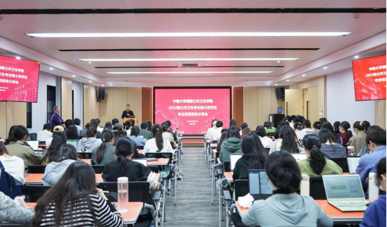 2022级公共卫生硕士专业学位研究生专业实践报告分享会在公卫楼六楼学术报告厅顺利举行。学院副院长秦家碧、业务办主任李敏、学工办副主任尹逊强、业务办干事杨敏等领导、老师参会并对学生的专业实践汇报进行点评。分享会由尹逊强主持。