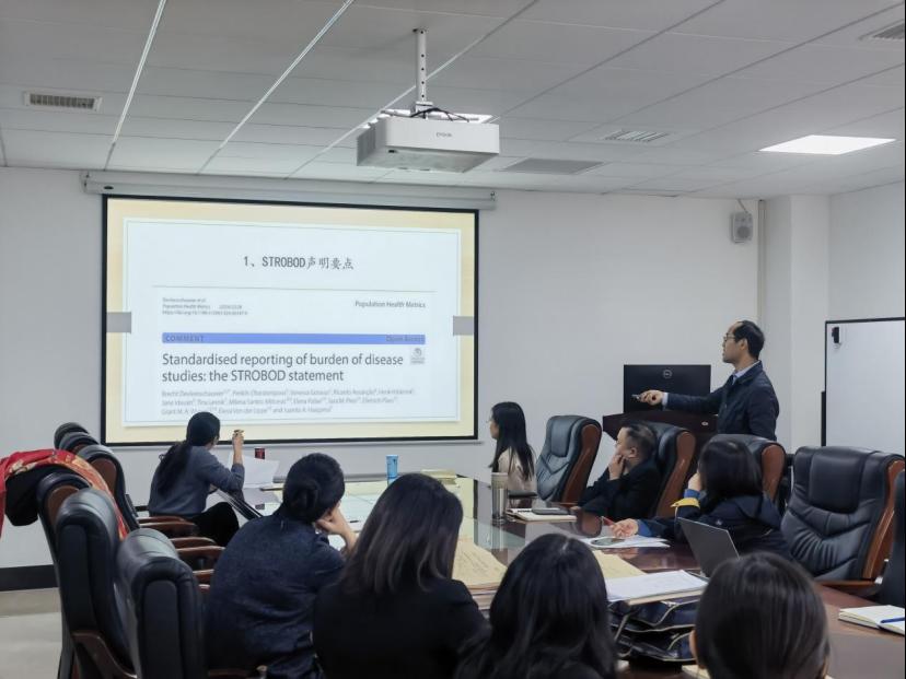 业务学习阶段,院长胡国清介绍分享了最新发表的《疾病负担研究结果报告规范(STROBOD)解读与思考》,流统系全体教师及研究生进行了认真学习和热烈讨论。