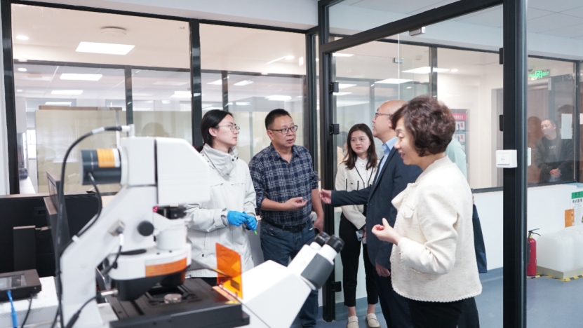 随后,李青一行前往参观大型仪器共享平台。作为学院重要的科研支撑平台之一,该平台配备了多种高端科研设备,不仅服务于本院师生,还对外开放,有效促进了科研资源的利用。刘璇老师详细介绍了平台的运行模式、服务范围以及未来发展规划。李青对学院在资源共享和科研水平提升方面所做的努力表示赞赏,并鼓励学院继续加强平台建设,为更多科研工作者提供支持。
