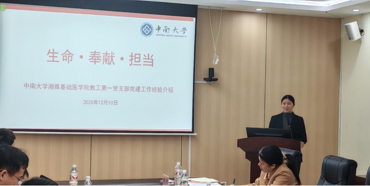 湘雅基础医学院教工第一支部建设经验介绍》为题,分享其所在支部创建教育部第三批“全国党建工作样板支部”并于2024年11月顺利通过验收的实践经验。她结合教学科研与社会服务中的具体案例,生动展示了党建如何赋能业务发展,实现“一个支部一座堡垒,一名党员一面旗帜”的实践案例。