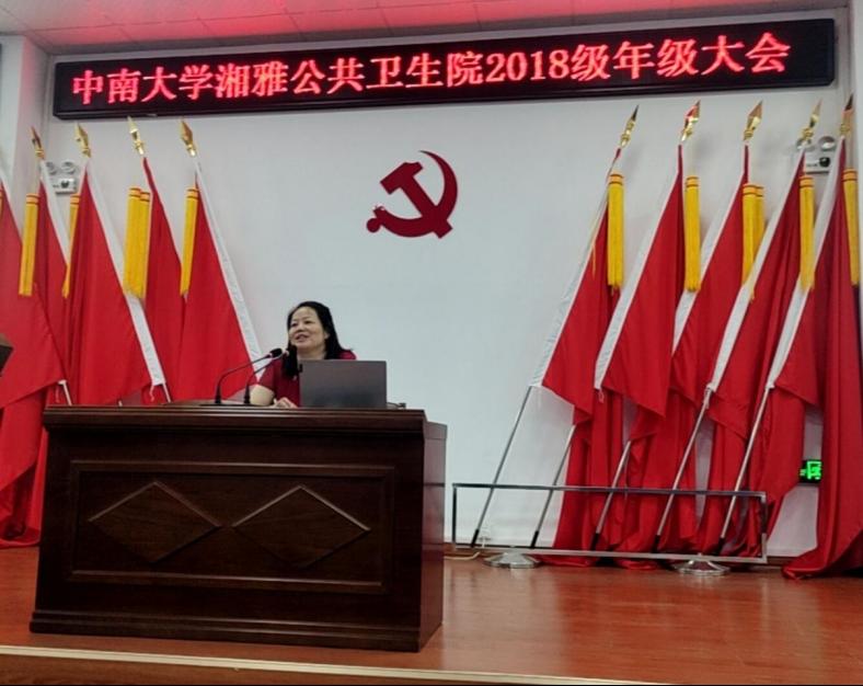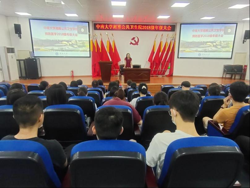 预防医学2018级年级大会于学院学术报告厅顺利召开。年级大会由学院党委副书记唐媛主持,预防医学2018级全体同学参会。大会分线上、线下两个会场,因疫情暂缓返校的同学通过线上会场参加。