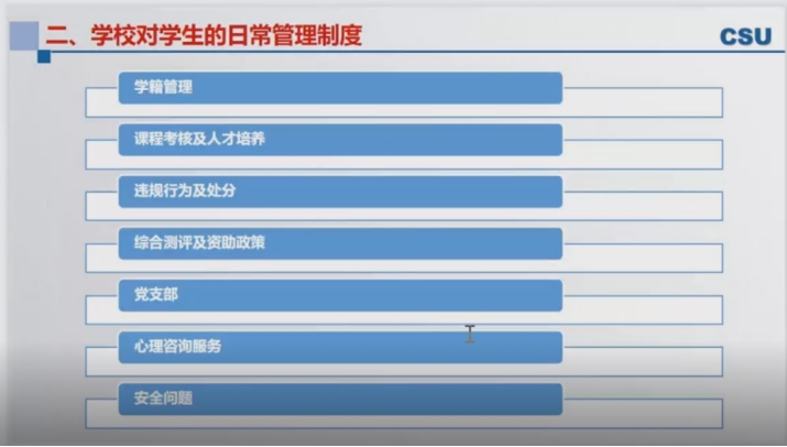 接下来,副书记向大家介绍了学校对学生的日常管理制度,包括学籍和学费管理、课程考核情况、违规行为及纪律处分、资助政策、加入党支部的要求与心理咨询服务等方面。其中,她从教学,科研两方面展示了韩漫