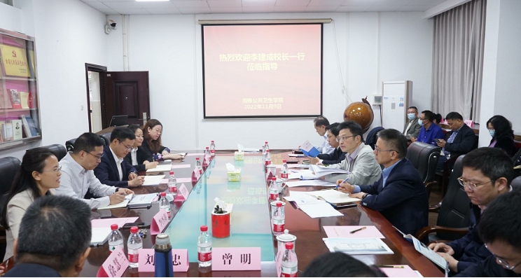 在听取学院汇报后,李建成校长、陈立章副校长等校领导与学院领导班子就学院发展中存在的学科建设、师资队伍、人才培养、学生住宿、实验室安全等问题展开了深入交流。李建成校长充分肯定了学院近年来取得的一系列成果。他指出,公共卫生专业对于医学事业的发展十分重要,学校高度重视学院发展,对目前面临的一系列问题,在详细了解和研究后,将逐项推进解决。他强调,学院要做好教师队伍布局,不断引进高质量人才;同时要清晰认识到学生是学校的主体,要重视和解决其在学习和生活中存在的诸多问题。会后,李建成校长还实地调研了湘雅老校区研究生宿舍,并与学生、宿管亲切交谈,询问宿舍具体情况。