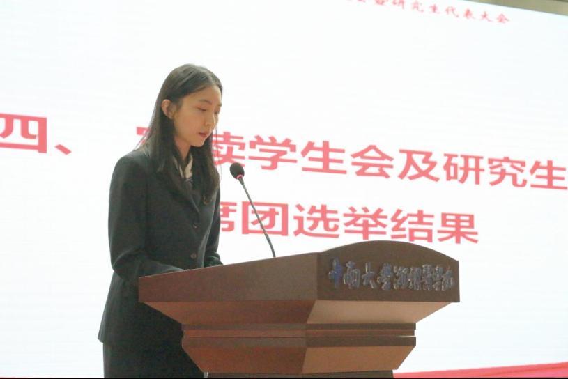 “别具医格”健康科普工作室指导老师名单,并由唐媛副书记为黄瑞雪老师颁发了“别具医格”健康科普工作室指导老师聘书。在主持人宣读《中南大学第七次学生代表大会暨研究生代表大会校级代表候选人简介》后,大会进行到第十项,选举出席韩漫
