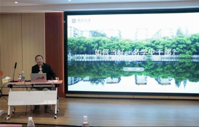 主讲人分享结束后,院团委书记王佩文对此次院团委及学生会全体干部会议进行总结,并指出各学生干部应以身作则,发挥榜样引领作用,同时各部门之间应加强交流,团结协作,共同发挥好学生干部的桥梁纽带作用。