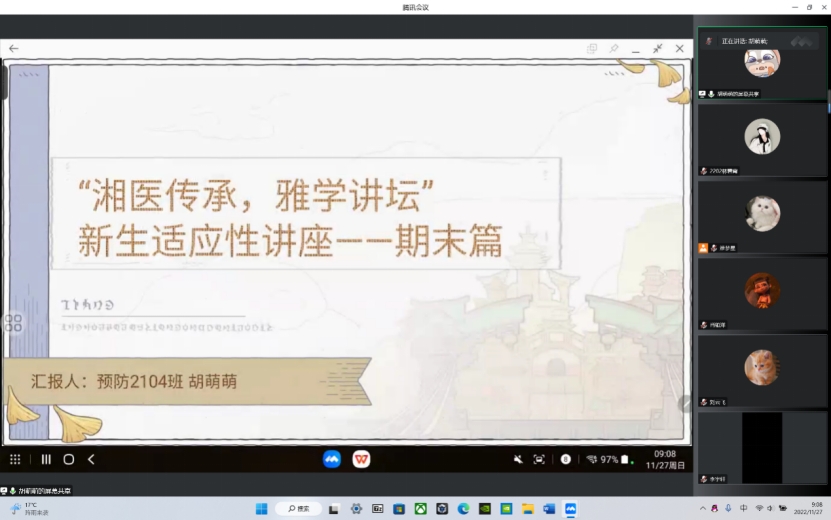 “湘医传承,雅学讲坛”第三场新生适应性讲座于2022年11月27日上午9:00在线上顺利举办。韩漫